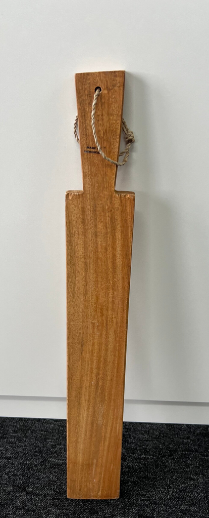 De Wheeler Plank is een grote plank, gemaakt van Teakhout. Geschikt als borrel of dessert plank, maar ook zeker voor de BBQ. Een lekkere steak of spareribs, of gewoon een vegaburger. Met het handvat is de Wheeler Plank makelijk te dragen en op tafel te zetten. En het touw is om de plank op te hangen, bv om te drogen of om makkelijk op te bergen.